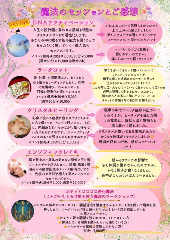 ヒーリング体験メニューも豊富に揃っております☆