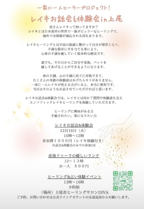 【レイキお話会&体験会&ヒーリング体験イベント』